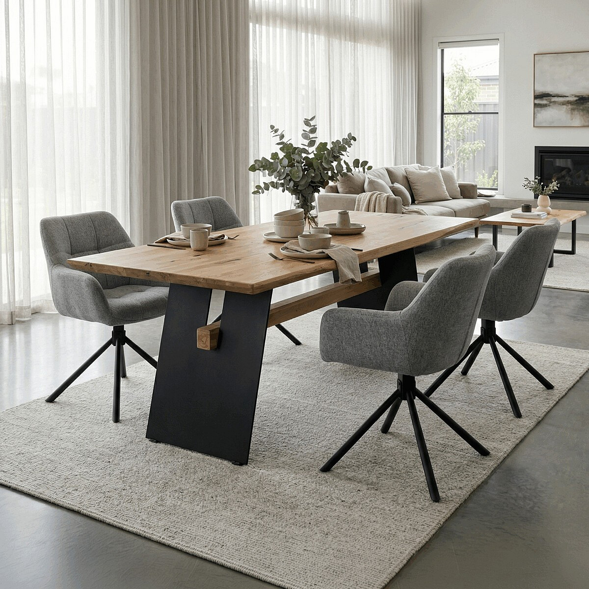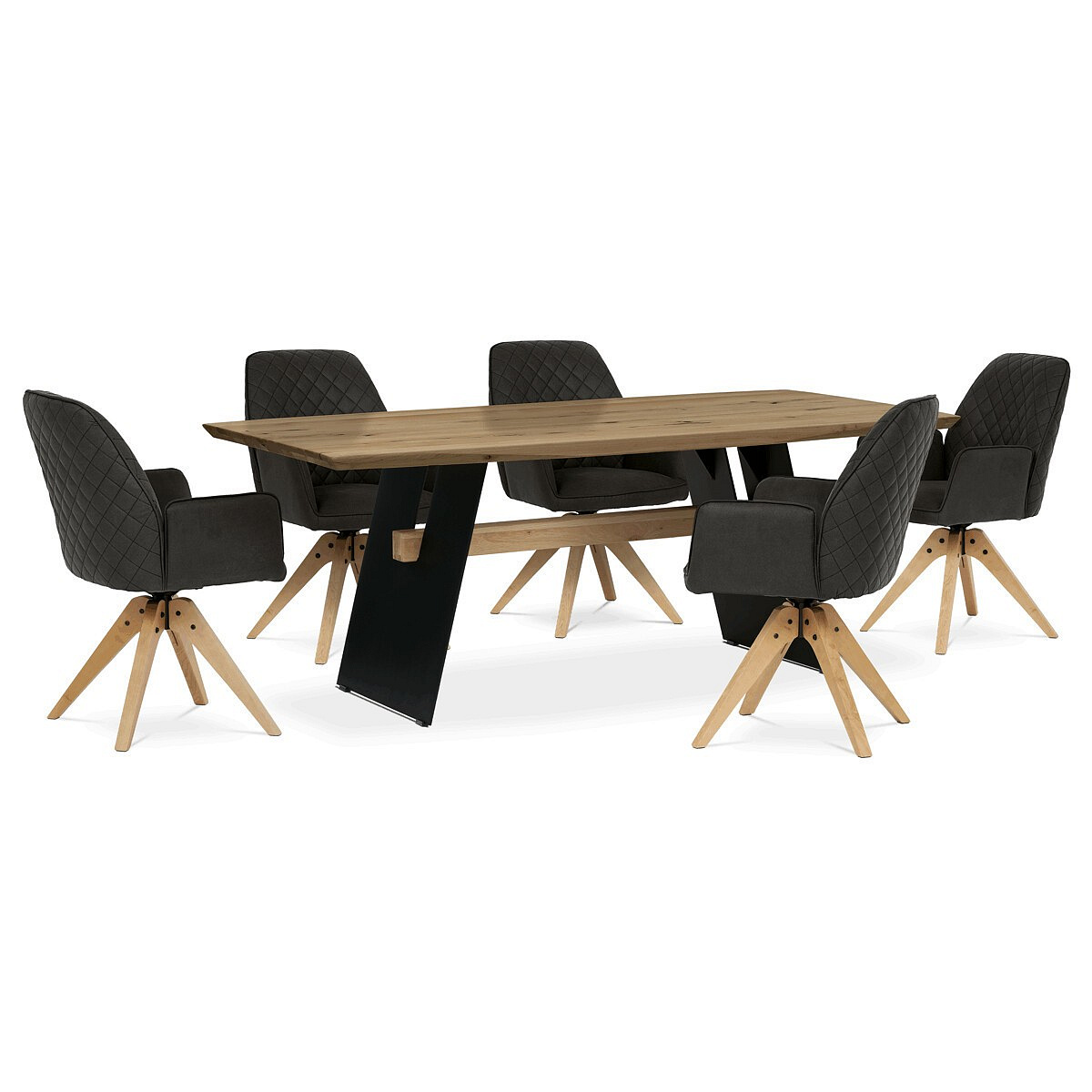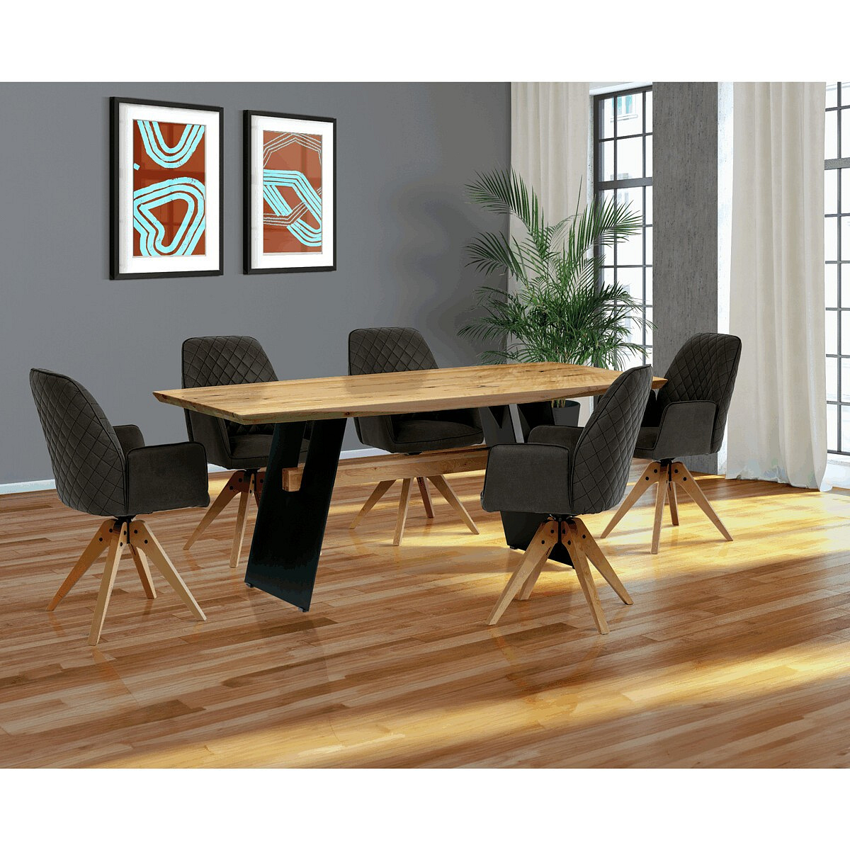 Jídelní stůl o rozměrech 200x100x75 cm kombinuje masivní dubovou desku s olejovanou povrchovou úpravou a stabilní kovovou podnoží v černé barvě. Masivní dubová deska v přírodním odstínu nabízí výraznou strukturu dřeva s viditelnými letokruhy a suky, které podtrhují autentický charakter materiálu. Olejovaný povrch zajišťuje ochranu dřeva a zároveň umožňuje zachovat jeho přirozený vzhled a příjemnou strukturu na dotek. Kovová podnož je navržena tak, aby poskytovala pevnou a stabilní oporu, přičemž její černé matné provedení kontrastuje s teplým tónem dřeva a dodává celku moderní industriální nádech. Stůl je určen pro každodenní použití v jídelnách či kuchyních, kde oceníte jeho robustnost i estetickou hodnotu.