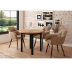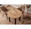 Rozměry: - průměr: 80 cm - výška: 77 cm - tloušťka desky: 3,8 cm Materiál: - deska: laminovaná dřevotříska - nohy: MDF - hrany desky: zakončené ABS plastem Barva: - zlatý dub craft + černá