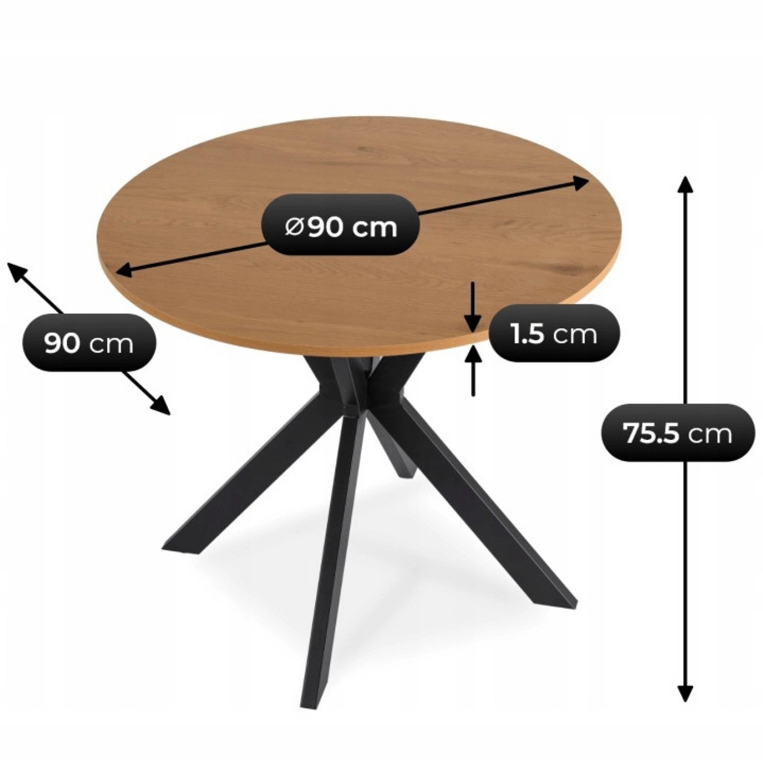 Stůl LAUREN 90 cm Dub Zlatý/Černý