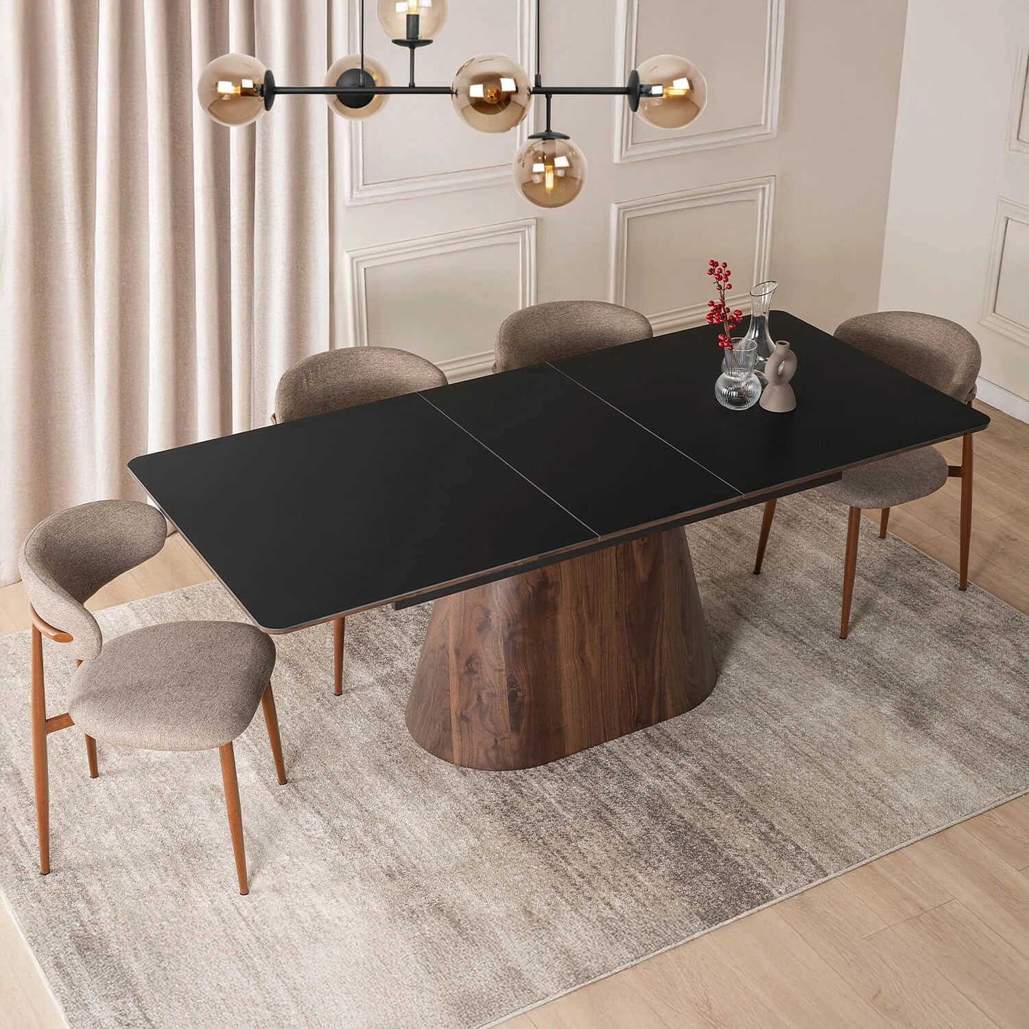 Stůl LIZBONA Keramický Rozkládací 160-200 cm Černý/Ořech