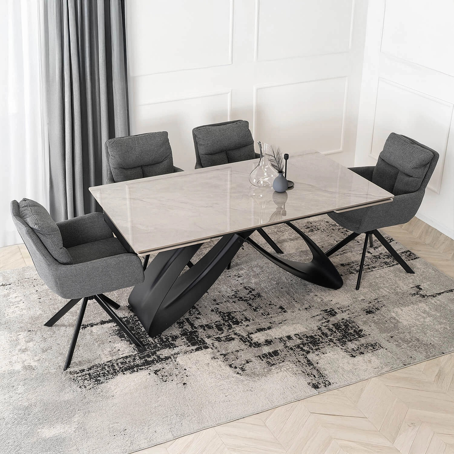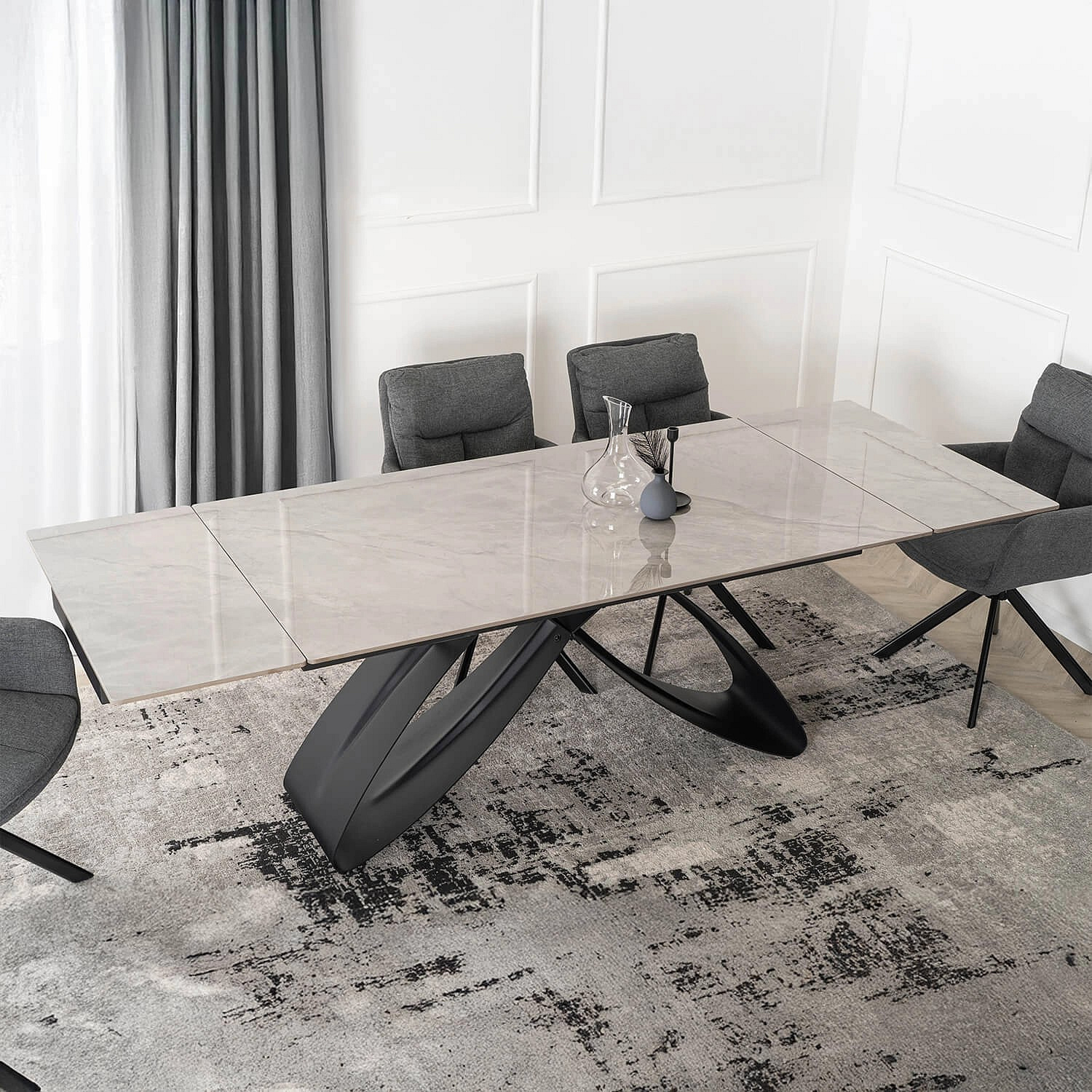Stůl LUIGI Keramický Rozkládací 160-240 cm Šedý Mramor/Černý