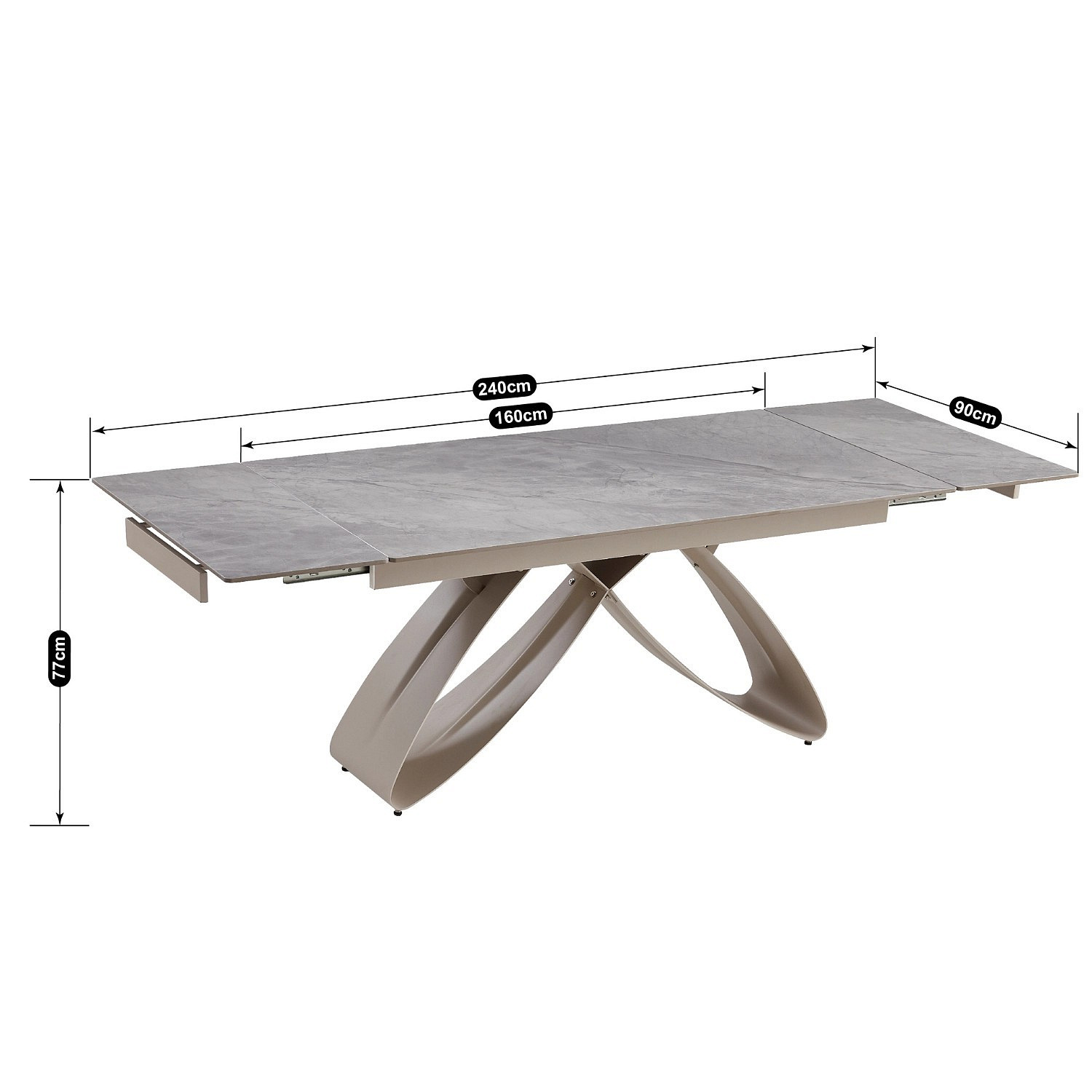 Stůl LUIGI Keramický Rozkládací 160-240 cm Šedý Mramor/Kašmír