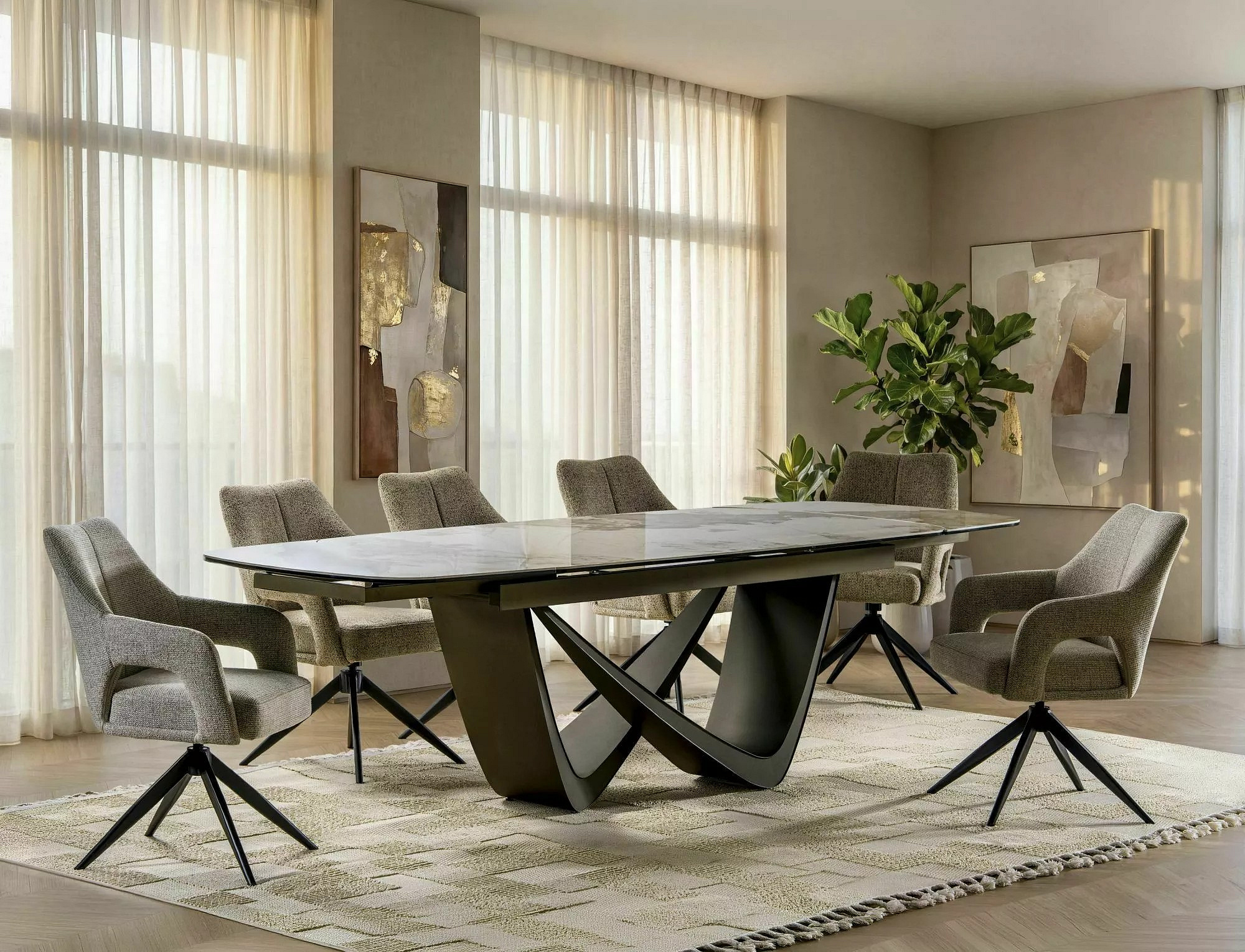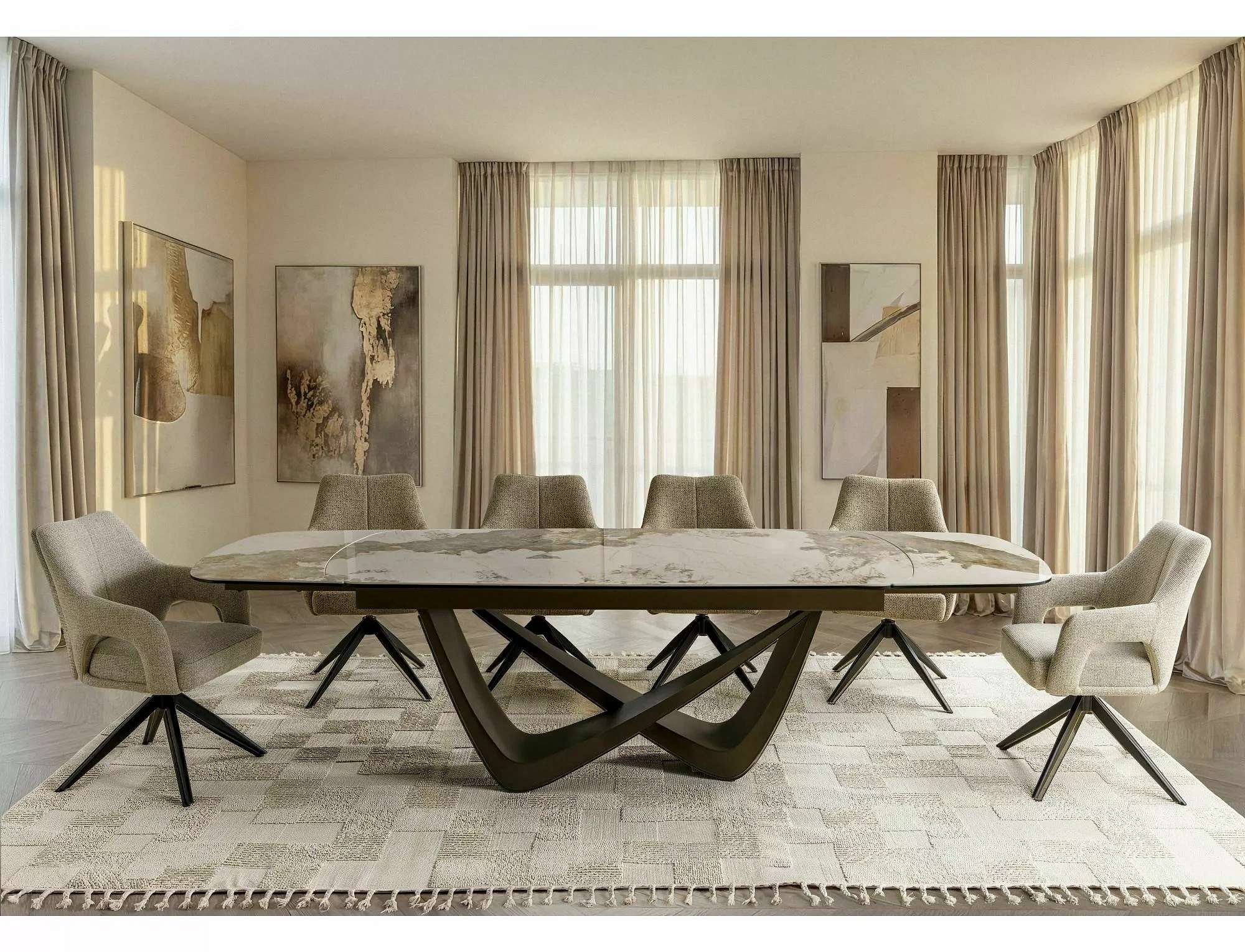Jídelní stůl - MARANELLO Ceramic, Pandro Bílý Lesk / Měděná