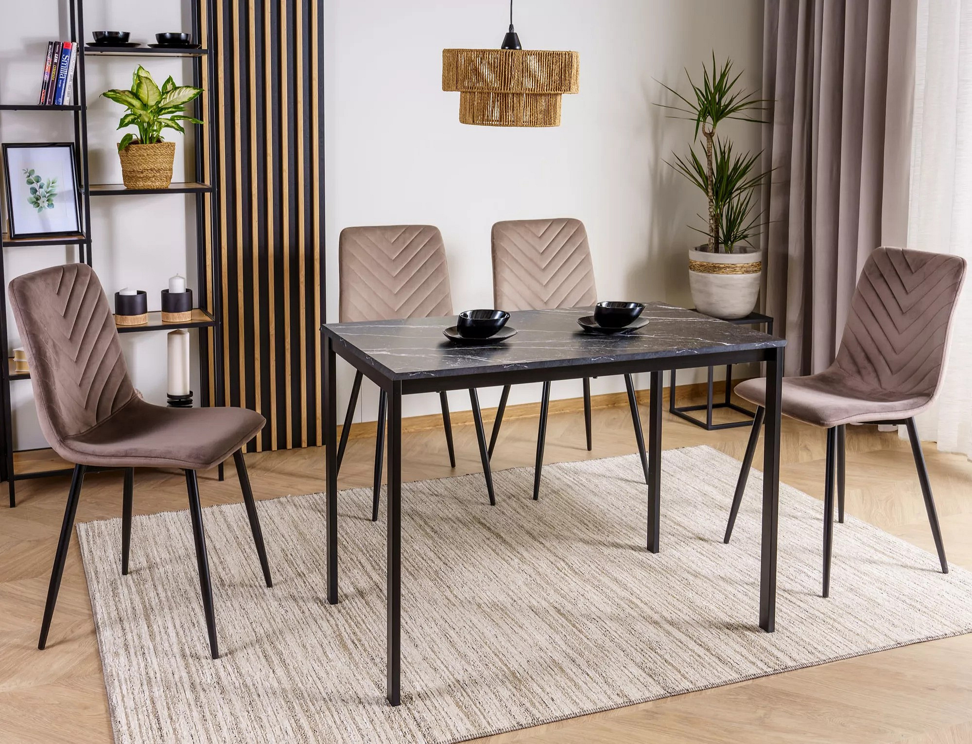 Jídelní stůl MARIO, Efekt černého mramoru/Černá