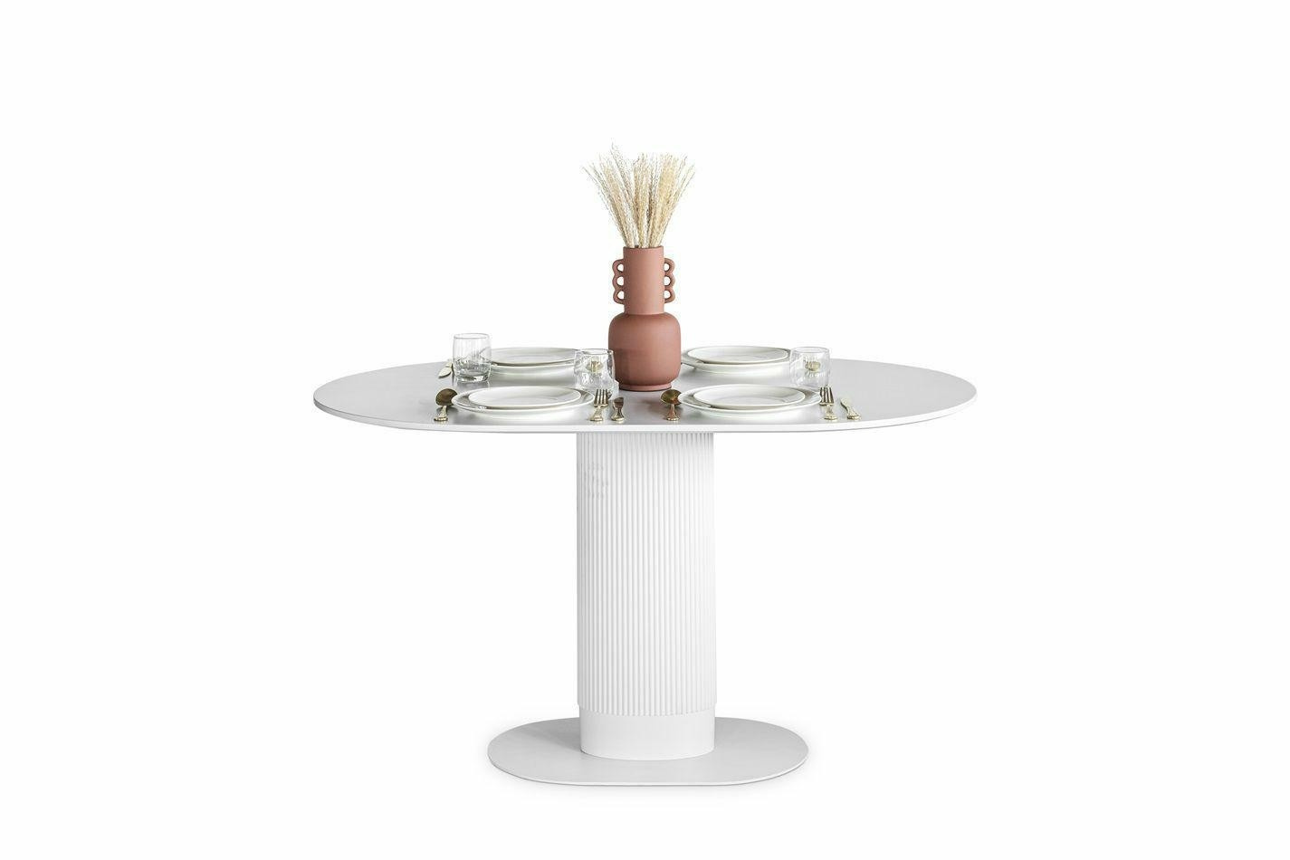 Stůl Maxim je moderní projekt s nadčasovým vzhledem. Oválný stůl o šířce 120 cm a hloubce 70 cm je ideální plochou pro 5-6 osob. Stůl na jedné noze byl vyroben z MDF desky a kovové základny. Noha stolu vyrobená z kovu byla ozdobena vertikálními lamelami z plastu, které jí dodávají moderní vzhled. Plochá základna stolu je kovová, práškově lakovaná na černo. Deska stolu vyrobená z odolné MDF desky okouzluje svým vzhledem díky jemnému podříznutí, které jí dodává lehkost. Stůl je k dispozici ve dvou barevných variantách. Vyžaduje montáž Hmotnost stolu: 25,6 kg