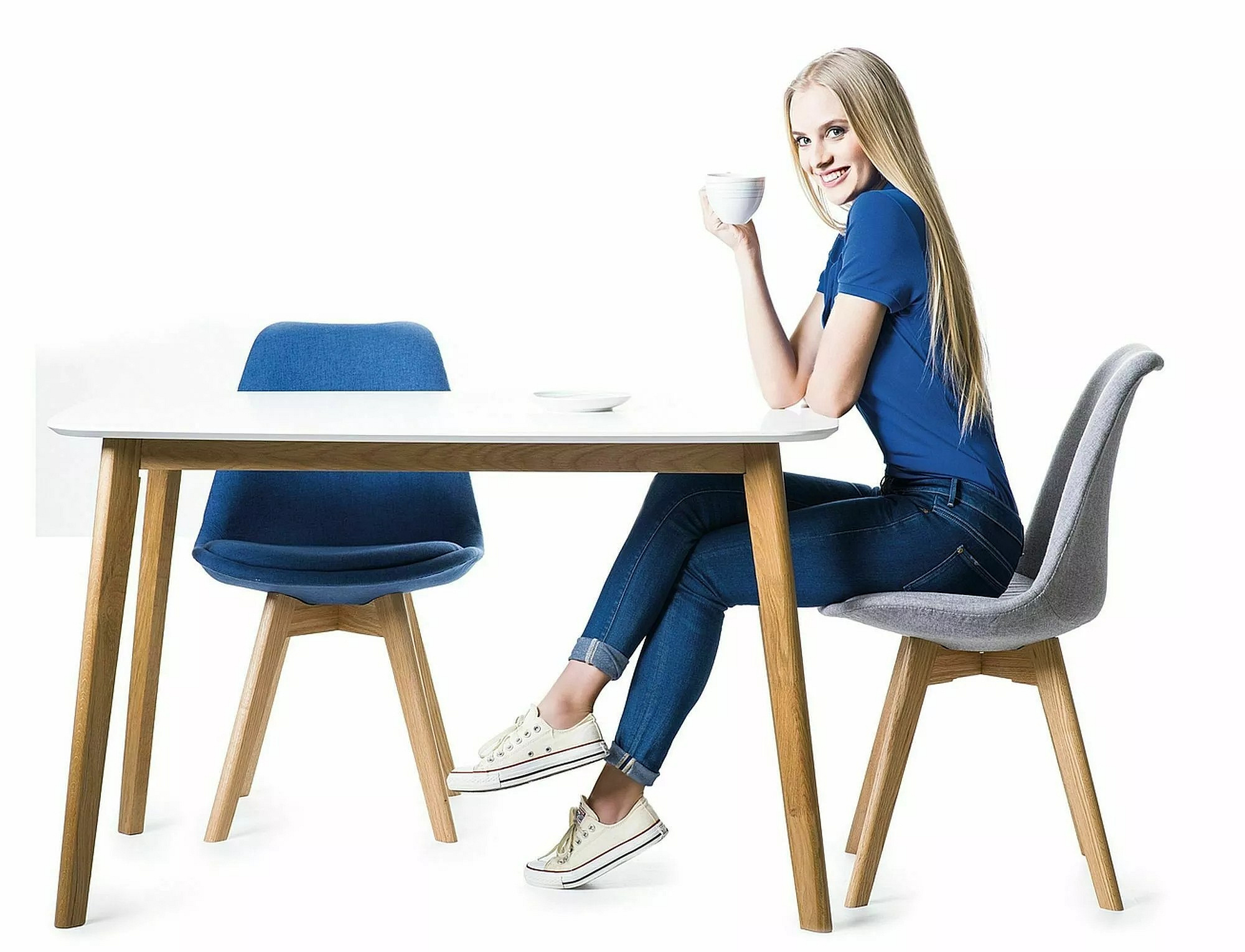 Jídelní stůl MOSSO I, bílý/dub