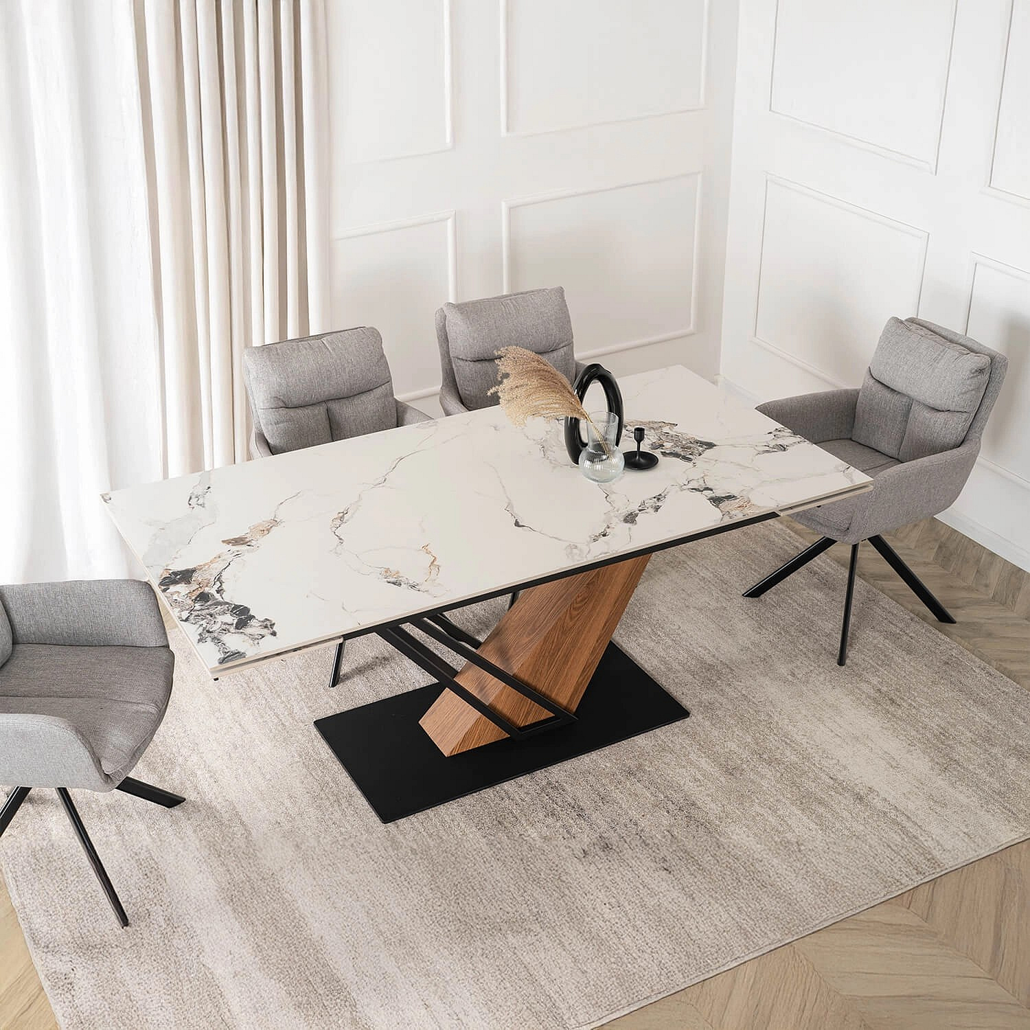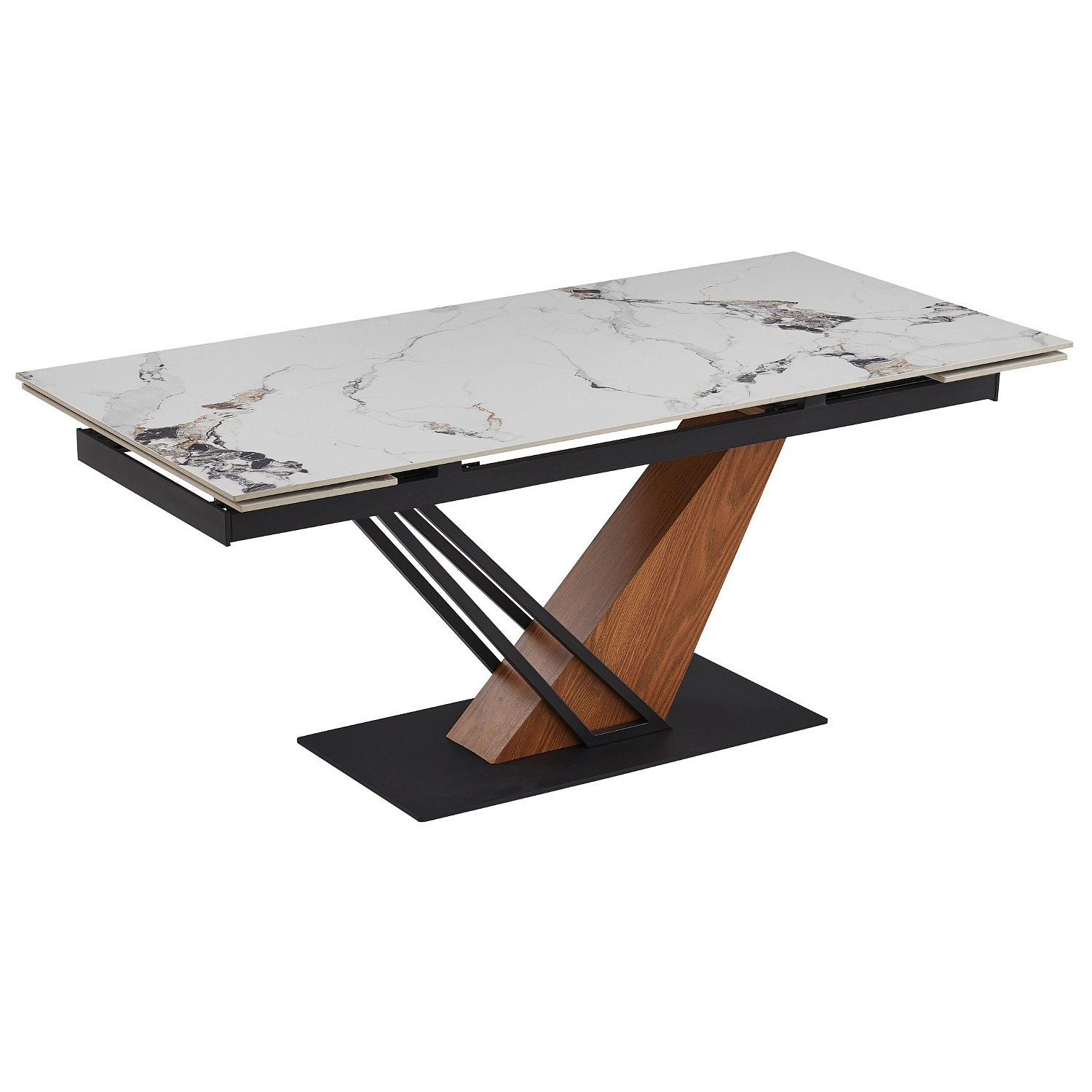 Stůl REX 2 Keramický Rozkládací 180-240 cm Bílý Mramor/Dub