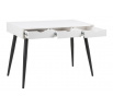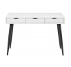Moderní stůl Scandi bude ideálním nábytkem pro práci z domova nebo pro psaní domácích úkolů. Psací stůl byl vyroben z velmi odolné bílé melaminové desky a kovových nohou lakovaných práškovou barvou na černo. Matný povrch stolu mu dodává klasický vzhled. Stůl má 3 zásuvky, které usnadní ukládání. Jemně profilované úchyty v zásuvce jsou praktické a dodávají nábytku jemný skandinávský vzhled. Stůl o šířce 110 cm se osvědčí nejen ve velké kanceláři nebo pokoji teenagera, ale také bude skvěle vypadat v menších místnostech nebo v kancelářském koutku. Rozměry kartonů: 8x 122,5 x 67cm, 13,5 x 73x 23cm