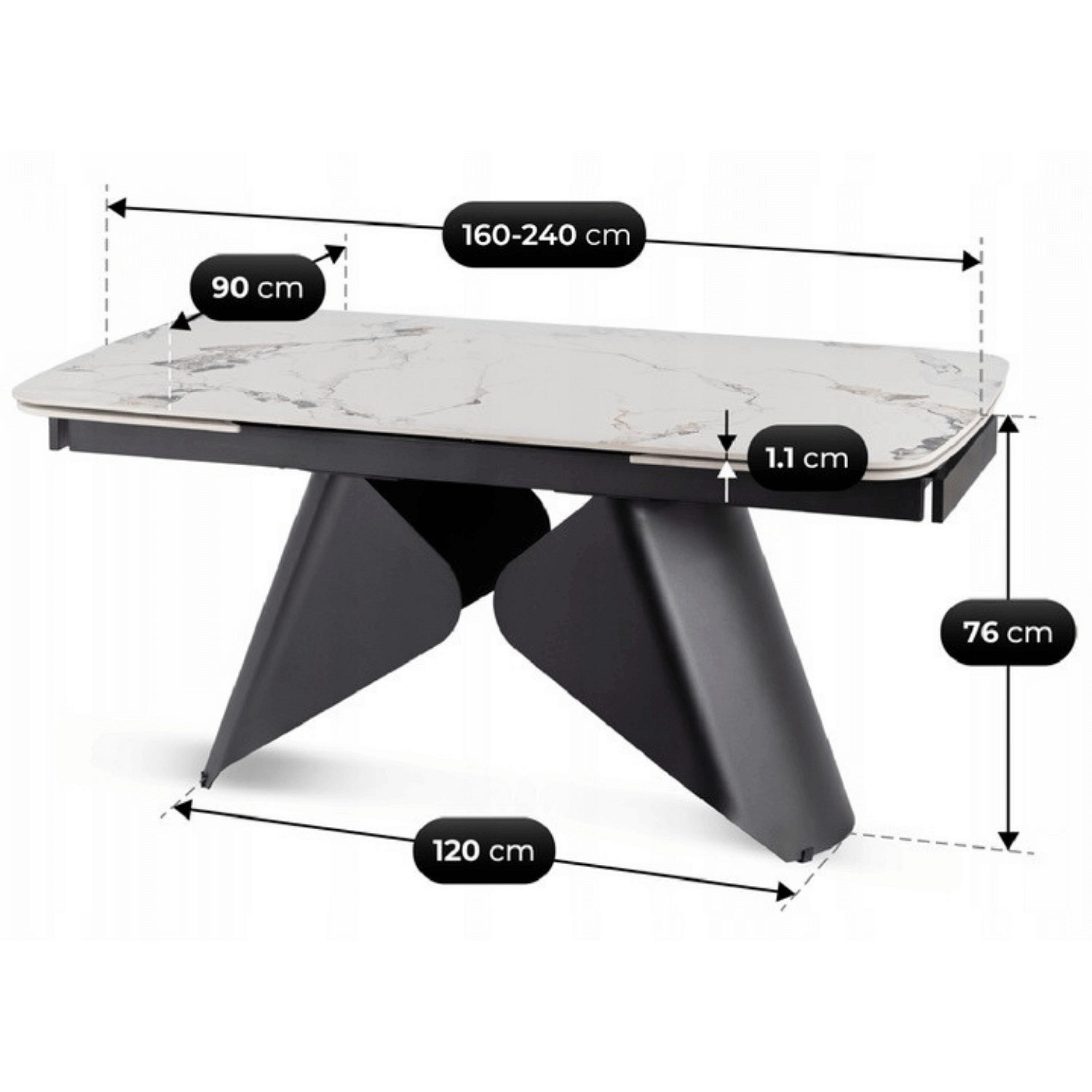 Stůl VERONA Keramický Rozkládací 160-240 cm Bílý Mramor/Černý