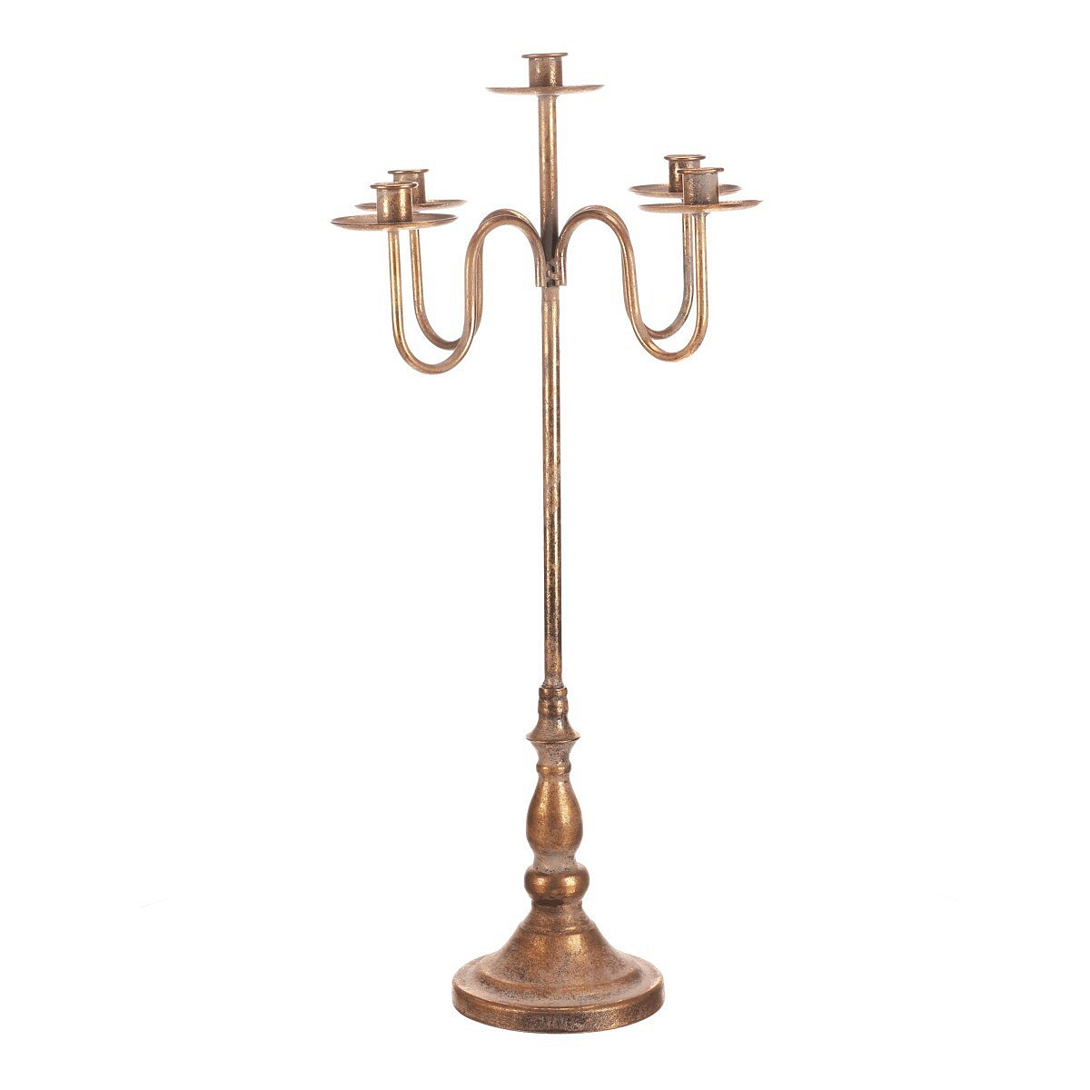Kovový svícen s pěti rameny na kónické svíčky a výškou 71 cm v elegantní zlaté barvě, je nádhernou královskou ozdobou pro vaši vánoční výzdobu. Ochranná sklíčka a starožitný vzhled dodávají svícnu nadčasový šarm, díky kterému se stane ústředním prvkem vašeho interiéru. Je ideální nejen na Vánoce, ale i pro různé slavnostní příležitosti, kde se stane výrazným doplňkem, který zaujme zraky všech pozorovatelů.