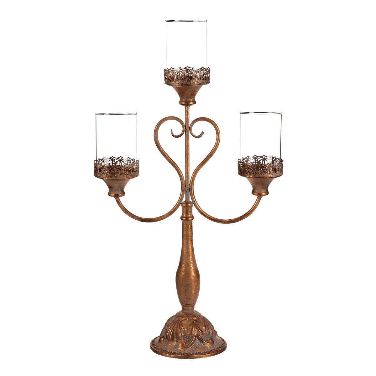 Svícen kovový - 65 cm, 3 ramena, se skly, barva zlatá