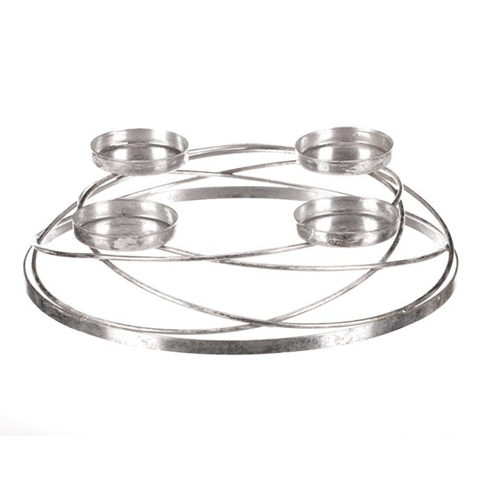 Tento kovový svícen ve stříbrném dekoru je dobrým základem pro tvorbu vlastní kreativní vánoční a zejména adventní výzdoby. Obsahuje na kovové konstrukci celkem čtyři držáky pro postavení svíček, typické pro adventní svícen. Máte tak jedinečnou základnu pro vytvoření svého vlastního adventního věnce s osobitým rukopisem. Svou univerzálností a všestranností nabízí nepřeberné množství využití a je jen na vaší fantazii a dekoračních schopnostech, jak s ním naložit.