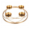 Tento kovový svícen ve zlatém dekoru je dobrým základem pro tvorbu vlastní kreativní vánoční a zejména adventní výzdoby. Obsahuje na kovové konstrukci celkem čtyři držáky pro postavení svíček, typické pro adventní svícen. Máte tak jedinečnou základnu pro vytvoření svého vlastního adventního věnce s osobitým rukopisem. Svou univerzálností a všestranností nabízí nepřeberné množství využití a je jen na vaší fantazii a dekoračních schopnostech, jak s ním naložit.