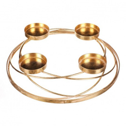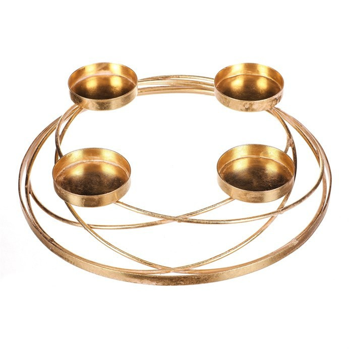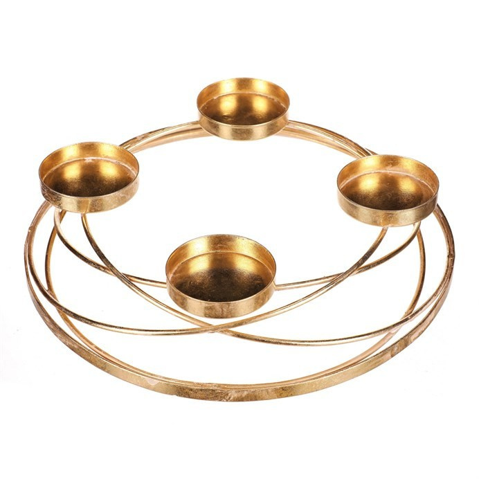 Tento kovový svícen ve zlatém dekoru je dobrým základem pro tvorbu vlastní kreativní vánoční a zejména adventní výzdoby. Obsahuje na kovové konstrukci celkem čtyři držáky pro postavení svíček, typické pro adventní svícen. Máte tak jedinečnou základnu pro vytvoření svého vlastního adventního věnce s osobitým rukopisem. Svou univerzálností a všestranností nabízí nepřeberné množství využití a je jen na vaší fantazii a dekoračních schopnostech, jak s ním naložit.