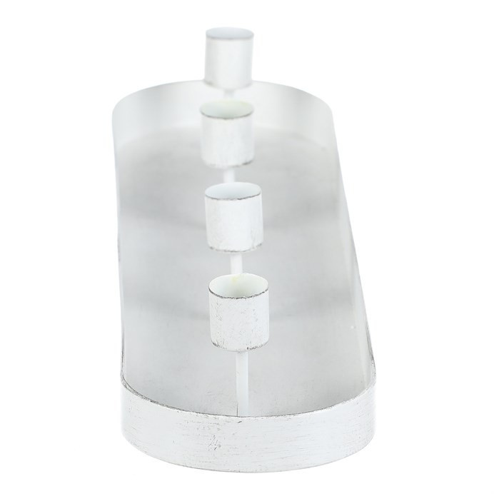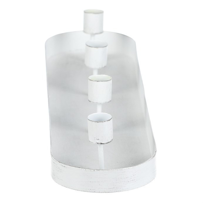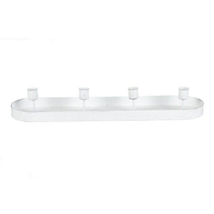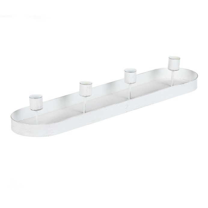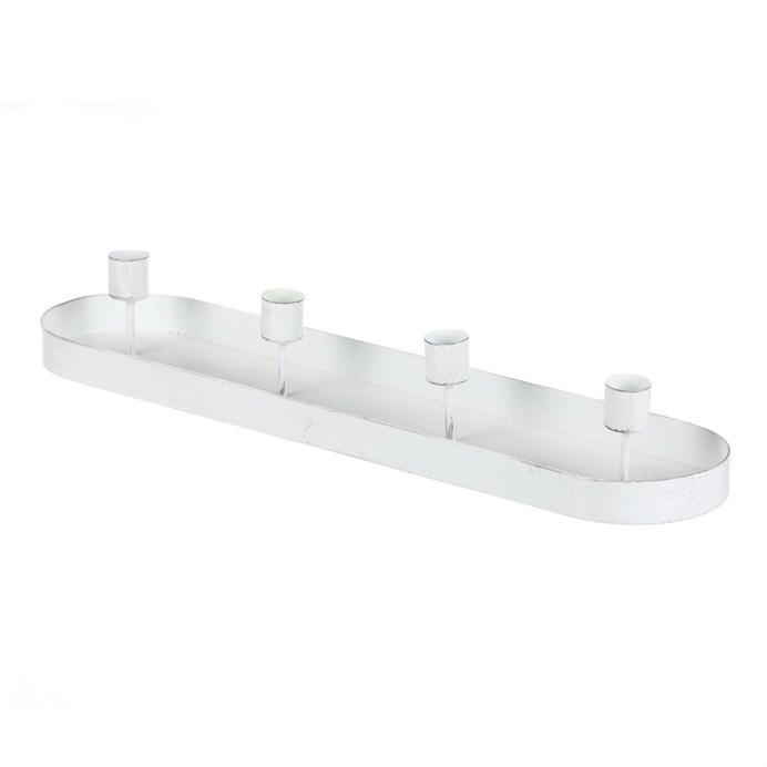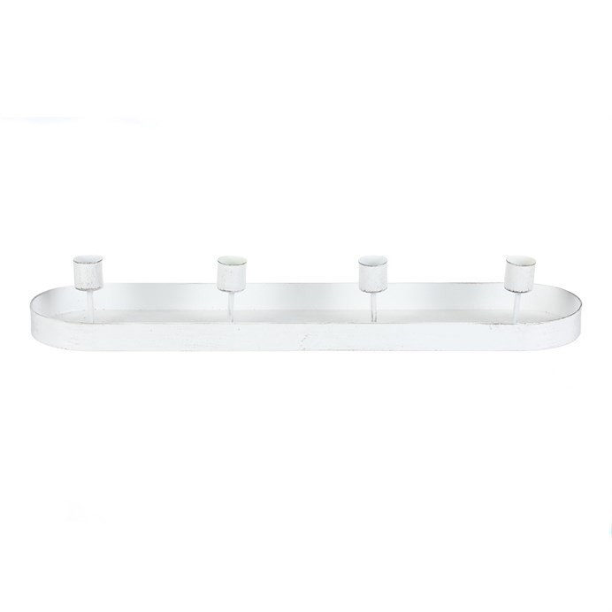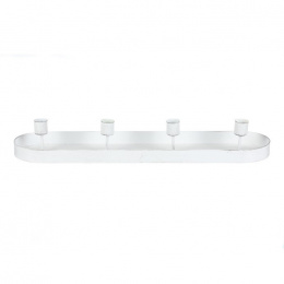 Svícen kovový - na 4 kónické svíčky, oválný, bílý