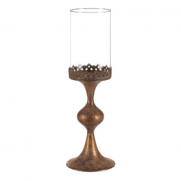 Svícen kovový se sklem - vysoký 47 cm, zlatý