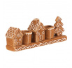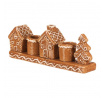 Svícen perníkový - keramika, na 2 kónické svíčky, domky a stromek