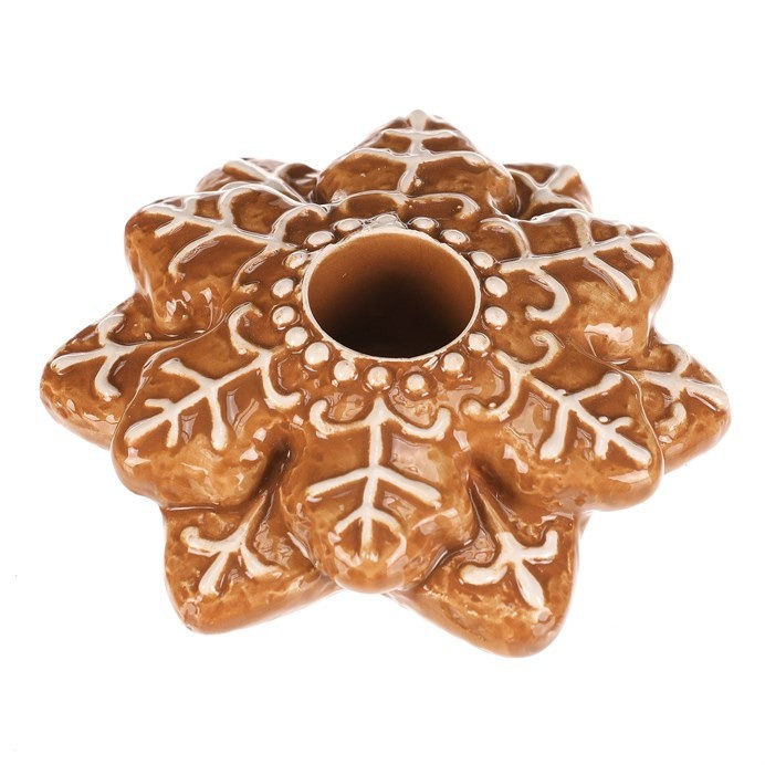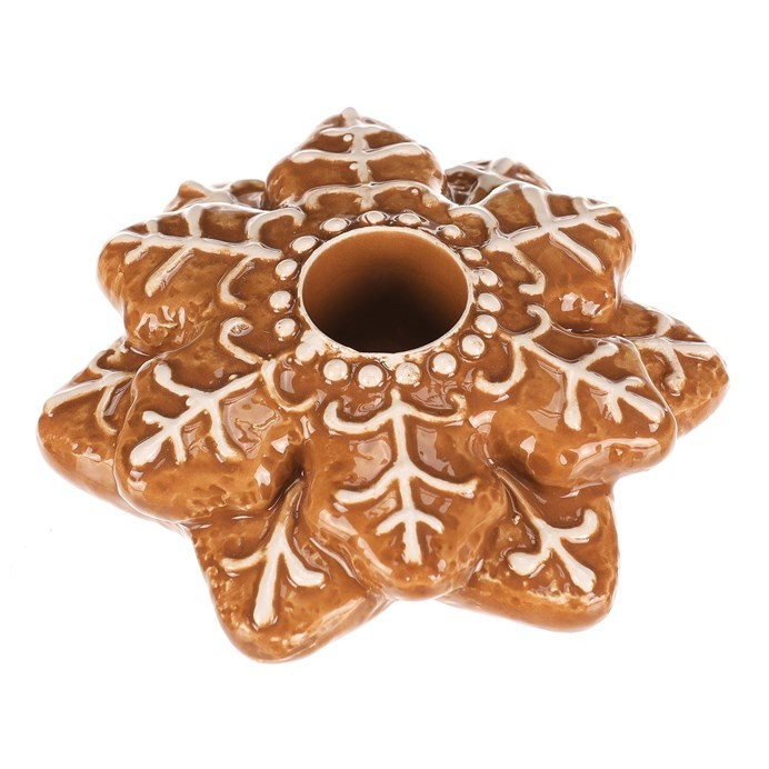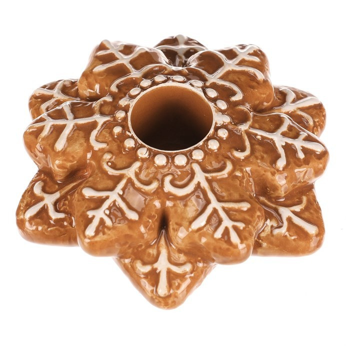 Svícen perníkový - keramika, na kónickou svíčku, tvar sněhové vločky