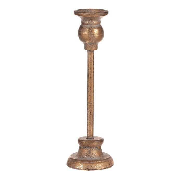 Kovová dekorace v podobě 23 cm vysokého zlatého svícnu vám přináší noblesu a eleganci přímo na váš stůl. Právě kombinace zlaté barvy se starožitným vzhledem, povýší vaše běžné stolování na královskou úroveň. S tímto unikátním artiklem, který věrně připomíná cenný předmět s historickou hodnotou, se budete cítit jako host na královském, či dokonce císařském dvoře. Už jen stačí vybrat tu správnou svíčku, zapálit knot a pak už si jen vychutnávat chvíle plné romantiky a elegance. Kombinace estetiky a světelného efektu promění fádní okamžiky trávené u stolu v nezapomenutelnou událost plné záře, lesku a luxusu.