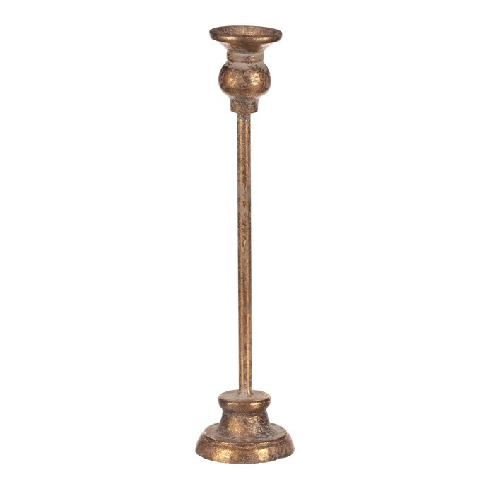 Kovová dekorace v podobě 31 cm vysokého zlatého svícnu vám přináší noblesu a eleganci přímo na váš stůl. Právě kombinace zlaté barvy se starožitným vzhledem, povýší vaše běžné stolování na královskou úroveň. S tímto unikátním artiklem, který věrně připomíná cenný předmět s historickou hodnotou, se budete cítit jako host na královském, či dokonce císařském dvoře. Už jen stačí vybrat tu správnou svíčku, zapálit knot a pak už si jen vychutnávat chvíle plné romantiky a elegance. Kombinace estetiky a světelného efektu promění fádní okamžiky trávené u stolu v nezapomenutelnou událost plné záře, lesku a luxusu.