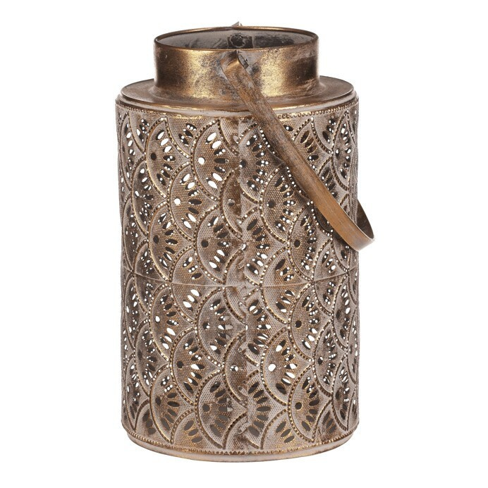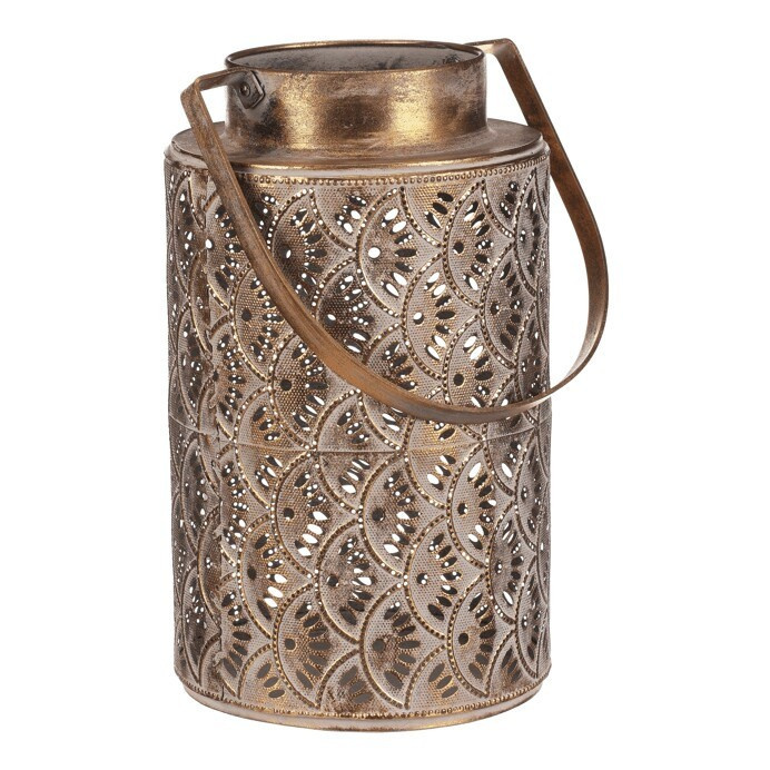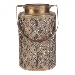 Svítilna kovová - ozdobná s rukojetí, zlatá
