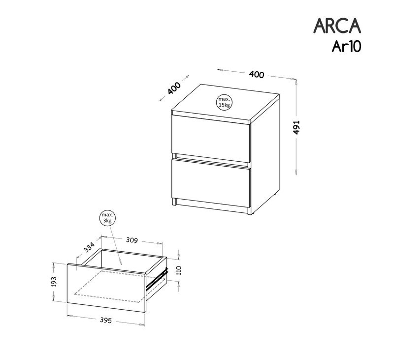 Systém "ARCA" AR10 (Noční stolek 2S) - Barva: arktická bílá