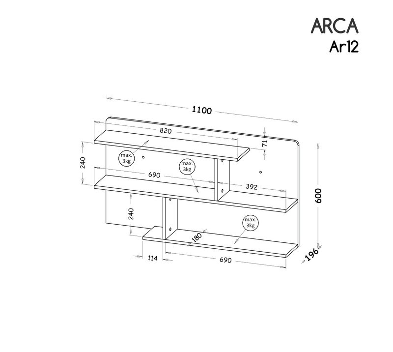 Systém "ARCA" AR12 (Polička) - Barva: arktická bílá