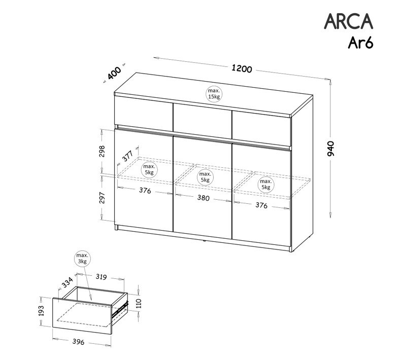 Systém "ARCA" AR6 (Komoda 3D 3S) - Barva: arktická bílá