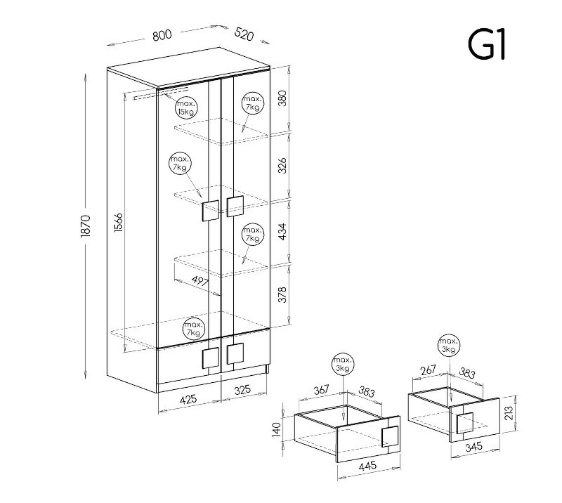 Systém "GUMI" G1 (Skříň 2D 2S) - Barva: bílý brilant
