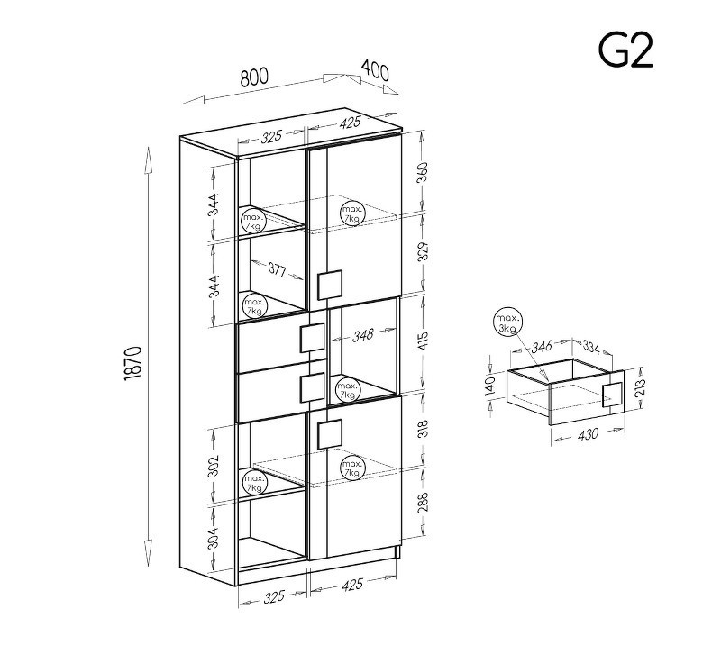 Systém "GUMI" G2 (Regál 2D 2S) - Barva: bílý brilant