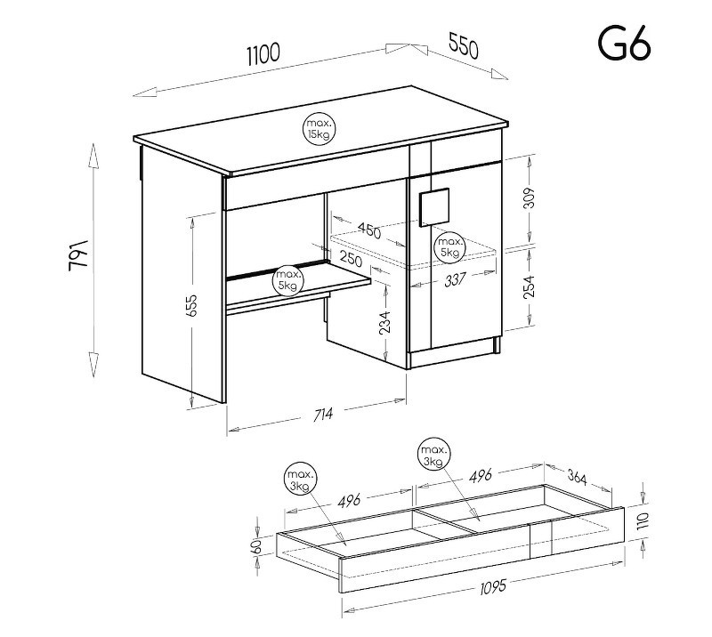 Systém "GUMI" G6 (Psací stůl D) - Barva: bílý briliant