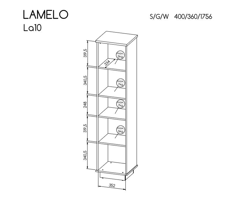 Systém "LAMELO" LA10 (Otevřený regál) - Barva: černá