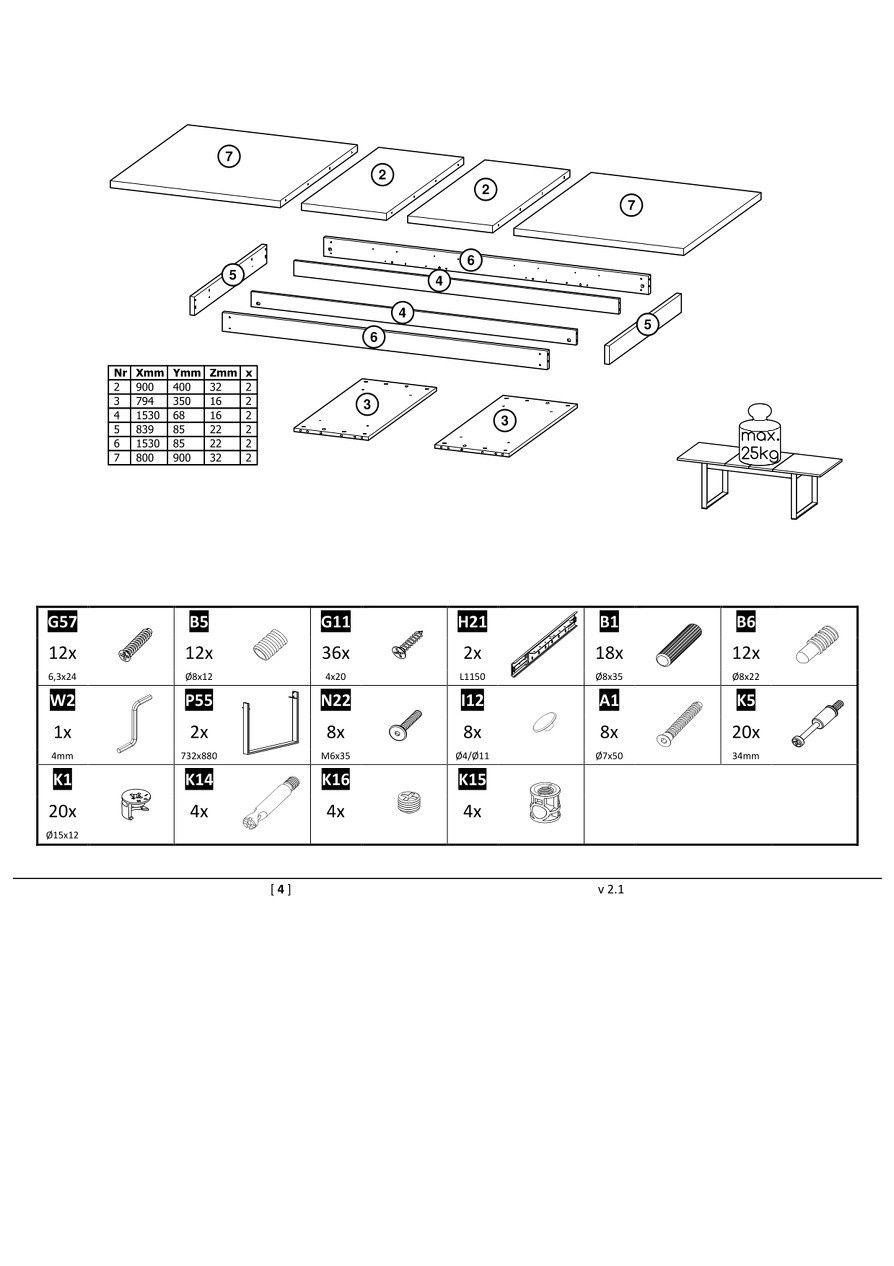 2 x vložka zvětšující stůl 2 x 400 mm,
