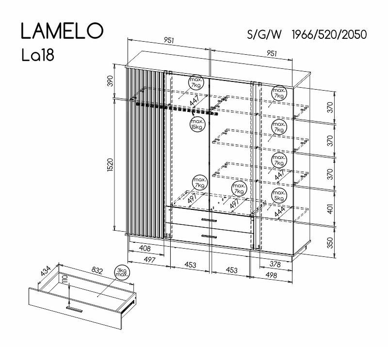 Systém "LAMELO" LA18 (skříň 4D2S) - Barva: černá