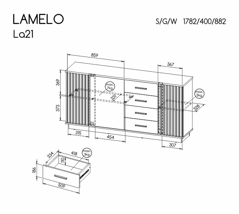 Systém "LAMELO" LA21 (komoda 3D4S) - Barva: černá