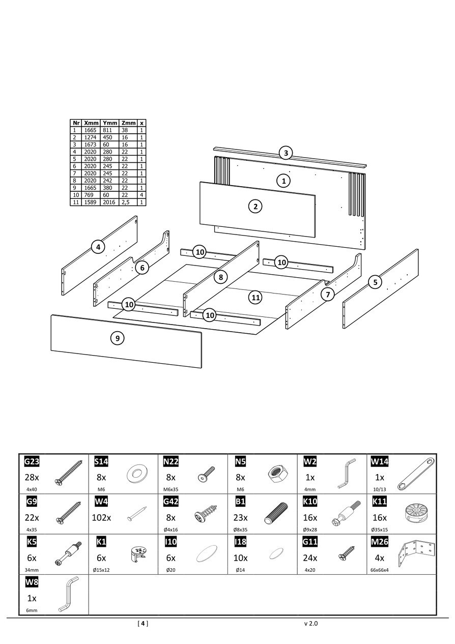 2 x úložný prostor na ložní prádlo,