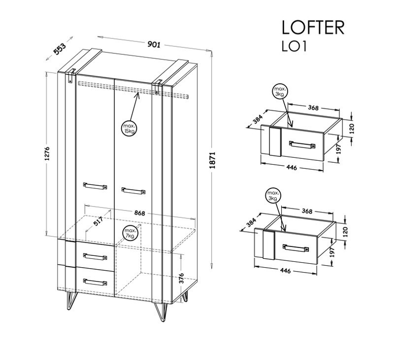 Systém "LOFTER" LO1 (Skříň 2D 2S) - Barva: beton millenium