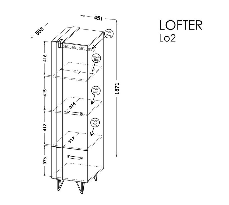Systém "LOFTER" LO2 (Regál 2D) - Barva: beton millenium