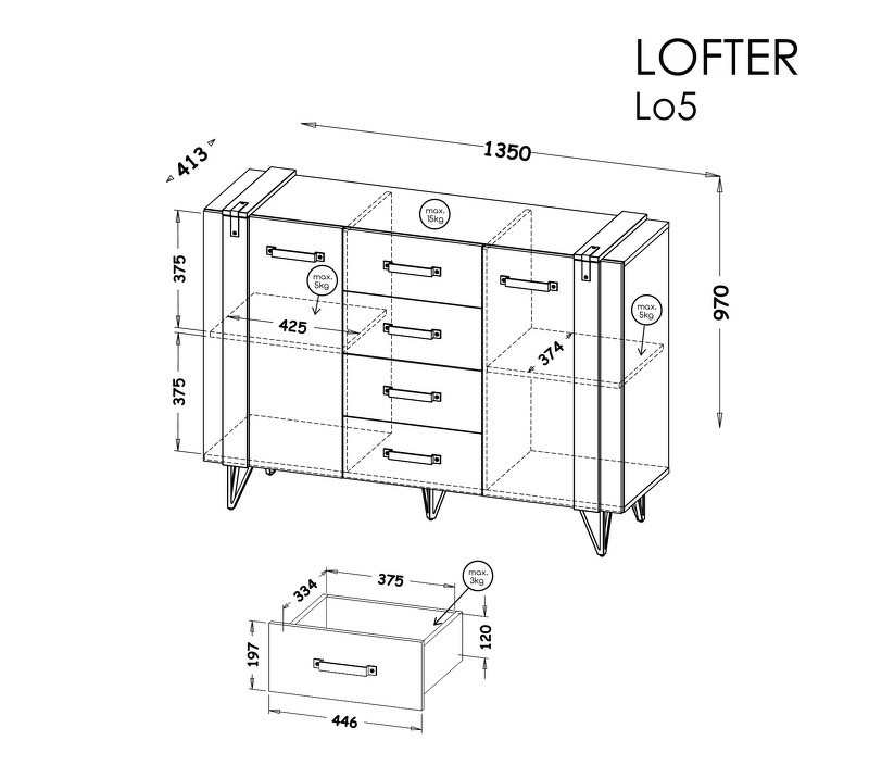 Systém "LOFTER" LO5 (Komoda 2D 4S) - Barva: beton millenium