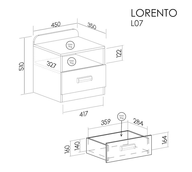 Systém "LORENTO" L12 (Noční stolek 1S) - Barva: dub nash