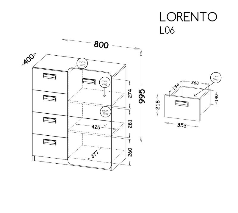 Systém "LORENTO" L6 (Komoda D4 S) - Barva: dub nash