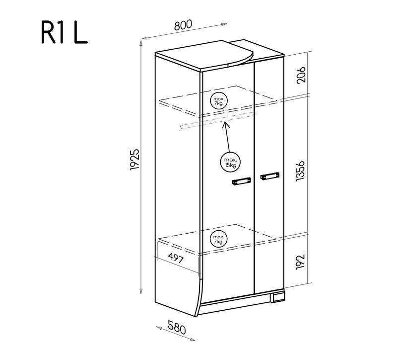 Systém "ROMERO" R1 (Skříň 2D) - Strana: L; Barva: arusha