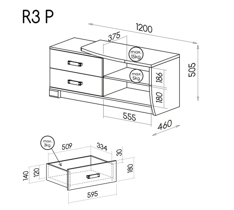 Systém "ROMERO" R3 (TV skříňka 2S) - Strana: P; Barva: arusha