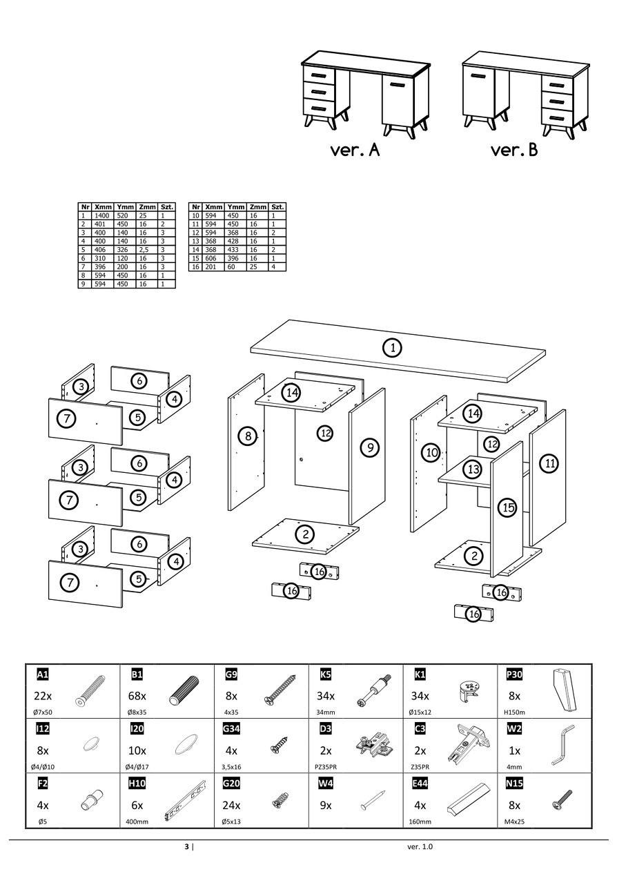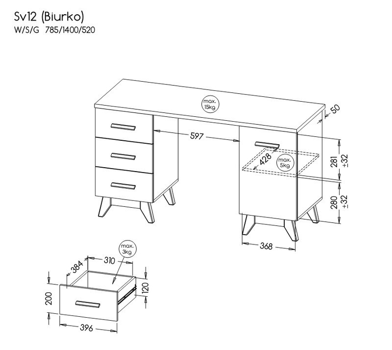 Systém "SVEN" SV12 (Psací stůl D 3S) - Barva: dub nash