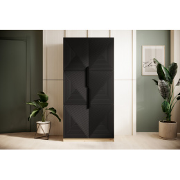 Šatní skříň Asha, dub artisan / černý mat / černé úchyty
