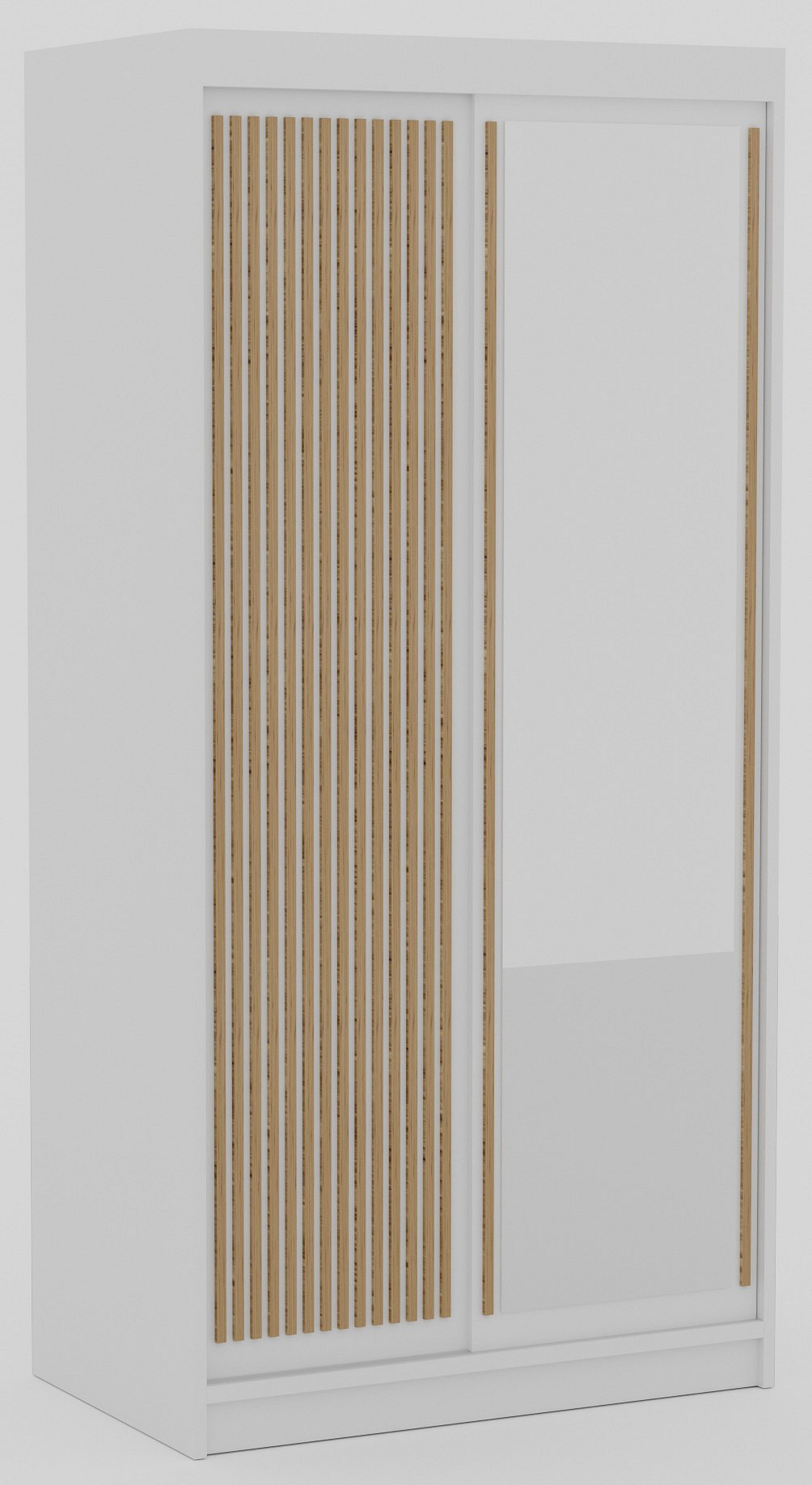 Šatní skříň Delia s posuvnými dveřmi a lamelami v barvách dřeva je stylové a praktické řešení pro ukládání oblečení a dalších předmětů ve vašem domě. Jeho elegantní design v dřevěných barvách dodává interiéru teplo a útulnost, zároveň se hodí k mnoha různým uspořádáním interiéru. Dveře skříně jsou vyrobeny z lamel, což jí dodává lehkost a modernost.