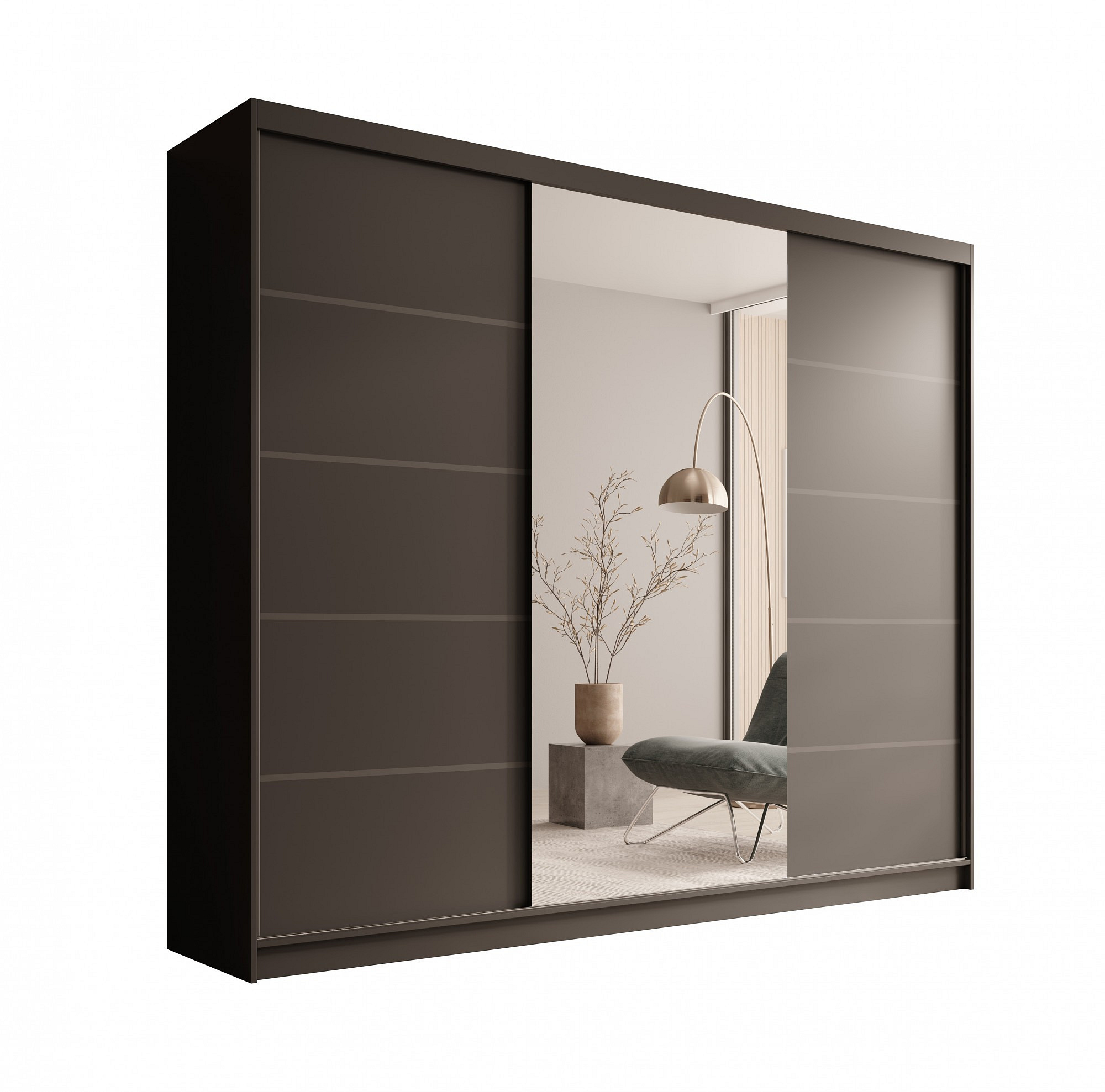 Šatní skříň s posuvnými dveřmi Etna 250 je elegantní a funkční řešení pro každou ložnici nebo šatnu. Jeho moderní design se dokonale hodí k různým stylům interiérů a velké zrcadlo na přední straně opticky zvětšuje prostor a dodává interiéru lehkost. Skříň Etna 250 je ideální kombinací estetiky a funkčnosti, která zajistí pohodlné ukládání a uspořádá váš prostor!