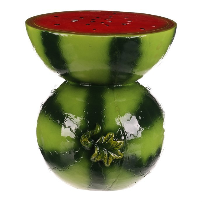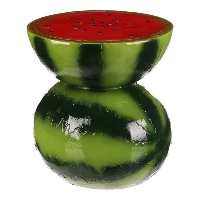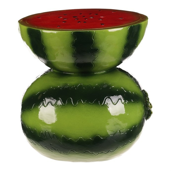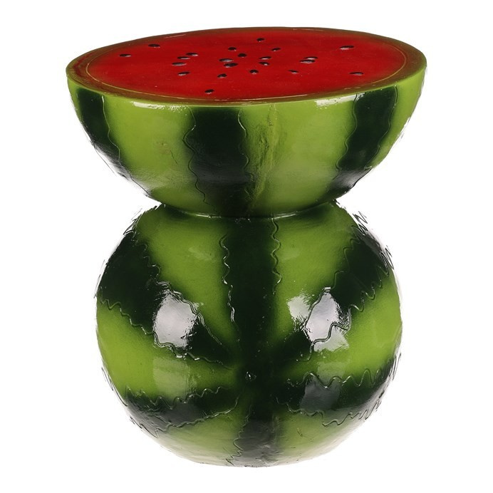 Menší taburet ve tvaru melounu je vyroben z pevného magnesia s lesklým povrchem v kombinaci červené a zelené barvy, který věrně imituje vzhled skutečného ovoce. Jeho zaoblený tvar a detailní barevné provedení s černými tečkami na červené ploše vrchní části dodávají dekorativní a hravý charakter. Taburet je vhodný jako originální doplněk interiéru, který může sloužit jako sedací plocha nebo stylový odkládací stolek. Díky materiálu se snadno udržuje a je zajištěna dlouhá životnost produktu i při běžném používání.