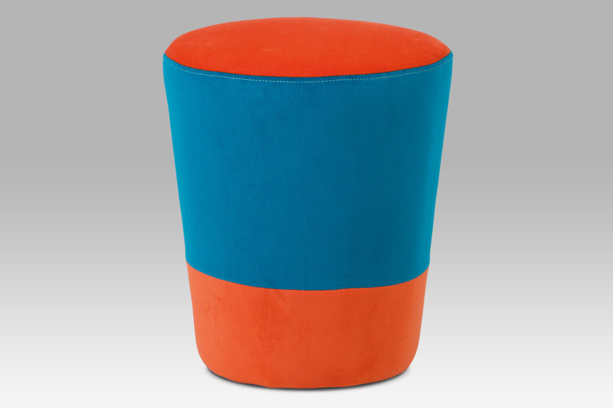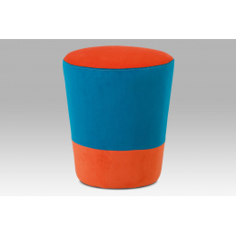 Taburet zátka, potah kombinace modré a oranžové látky mikroplyš, nosnost 80 kg