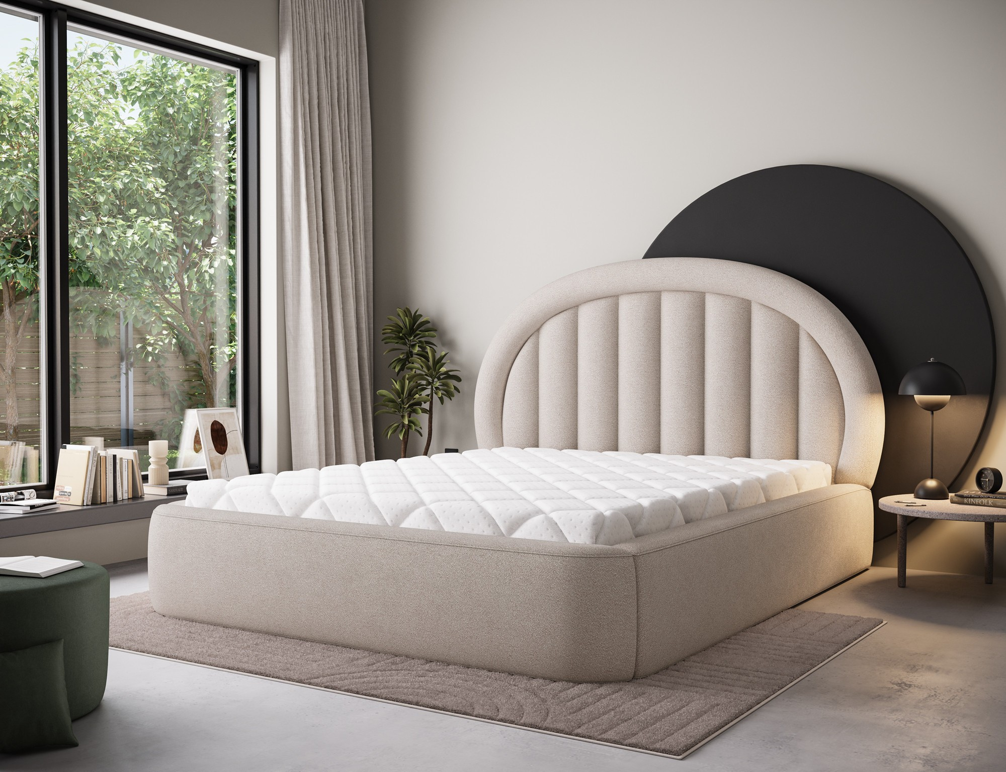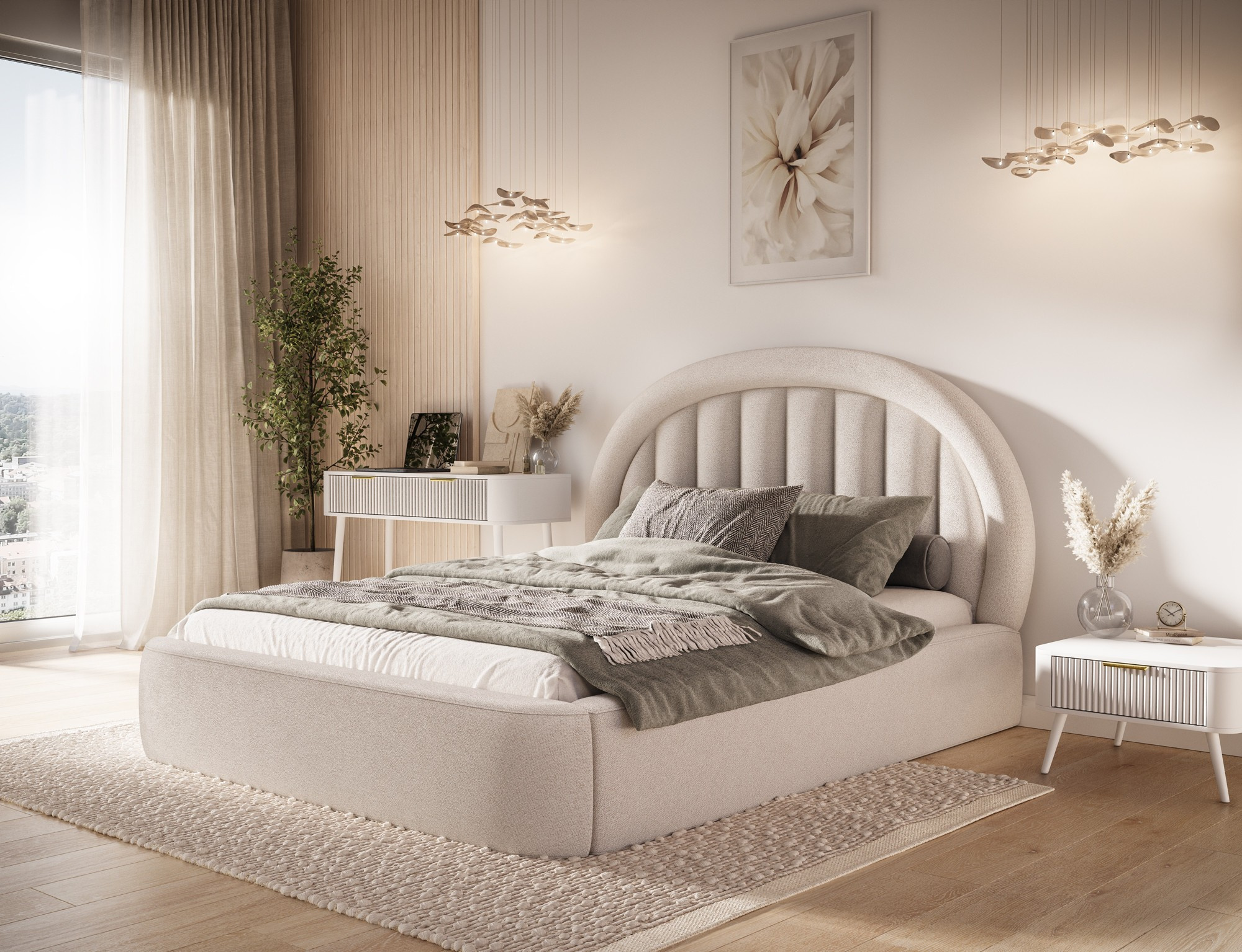 Postel do ložnice Tapedo kombinuje moderní design, funkčnost a pohodlí při spaní. Dostupné ve třech velikostních variantách: 140x200 cm, 160x200 cm a 180x200 cm, umožňuje přizpůsobit šířku vašim individuálním potřebám – 165 cm, 185 cm nebo 205 cm. Celková výška postele je 131 cm a hloubka je 221 cm, což konstrukci dodává elegantní a vyvážený vzhled. Výplň z vysoce kvalitní polyuretanové pěny T2130 zajišťuje optimální podporu těla a vynikající pohodlí. Postel Tapedo je vybavena praktickým úložným prostorem na lůžkoviny, který usnadňuje udržování pořádku ve vaší ložnici. Stabilní černé plastové nohy dodávají designu lehkost a moderní nádech. Díky své solidní řemeslné práci, funkčním vlastnostem a estetické formě, postel Tapedo dokonale doplňuje moderní interiérové uspořádání, čímž vytváří elegantní a útulný prostor pro odpočinek.